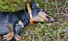 Taxen hade drivit rådjur en timme när den attackerades och dödades. Informationen på länsstyrelsens skylt är maskerad av redaktionen. Foto: Länsstyrelsen Gävleborg